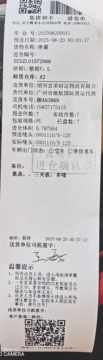 向前:8月15日绍兴诸暨华维至宁波慈溪集散仓