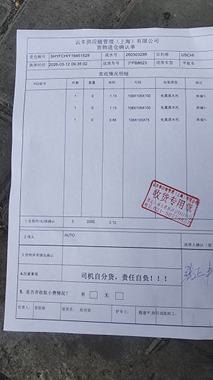 3月11日绍兴诸暨至上海云丰国际进仓1票和上海浦东恩原进仓1票
