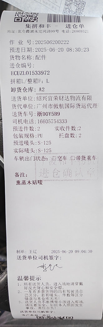 6月19日绍兴诸暨至宁波市北仑区和丰仓
